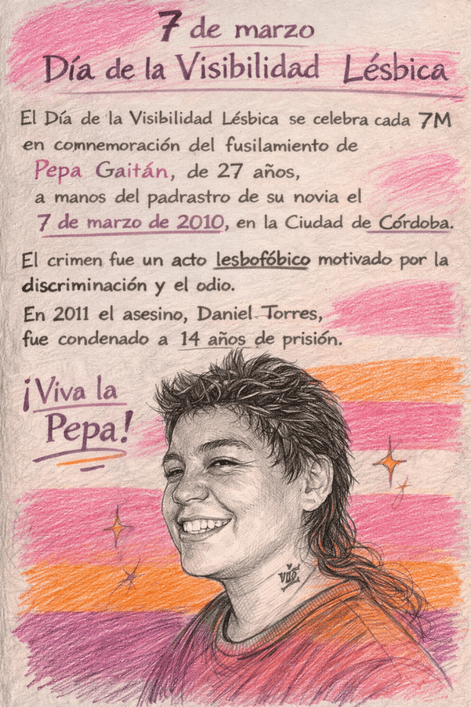 Cada 7 de marzo se celebra en Argentina el Día de la Visibilidad lésbica en conmemoración del fusilamiento de Pepa Gaitán, de 27 años a manos del padrastro de su novia el 7 de marzo de 2010.